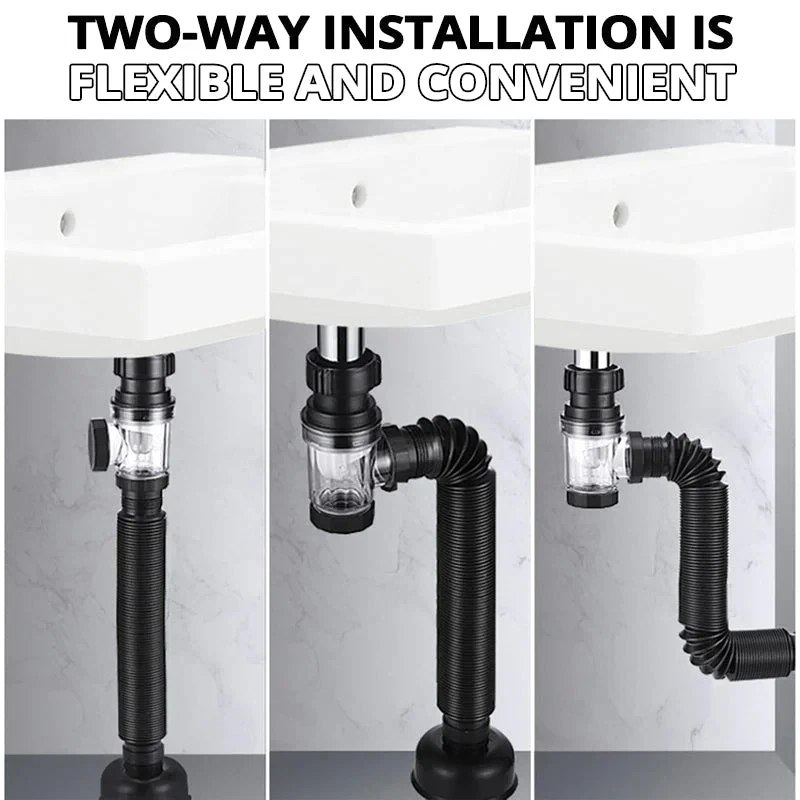 Keep your sink and bathroom free from clogs and odors with this flip-top anti-odor drain pipe set. Designed with a retractable, flexible downspout for easy installation and adjustment. The built-in deodorizing filter blocks unpleasant smells from coming up through the drain. Perfect for kitchen sinks, bathroom sinks, or laundry areas. Anti-clog design prevents hair, food scraps, and debris from blocking pipes. Durable, high-quality materials ensure long-lasting performance and resistance to wear. Easy to clean and maintain for daily use. The flip-top feature allows for quick inspection and cleaning. Ideal for improving hygiene and water flow in your home. Upgrade your plumbing setup with this practical, anti-odor, and anti-clog drain pipe set.