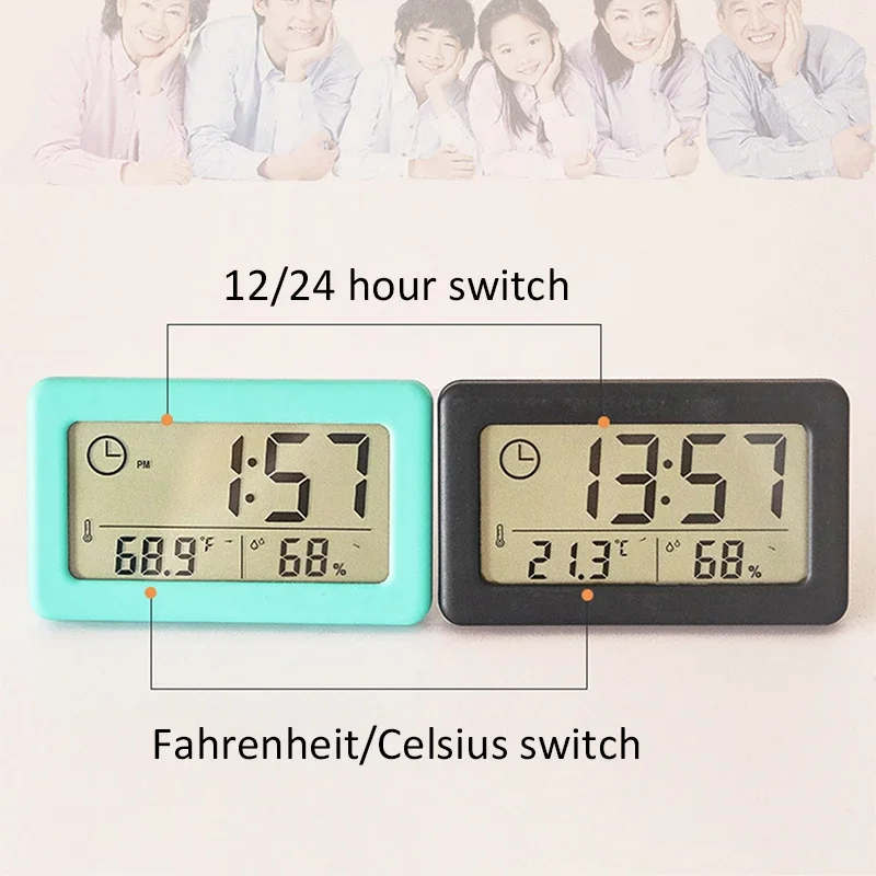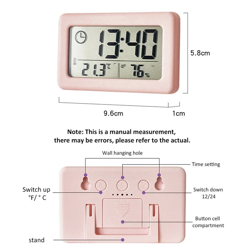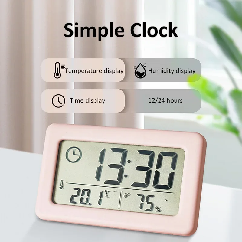 Stay on time and track room comfort with this mini digital alarm clock. Designed with an ultra-thin body, it features time, temperature, and humidity display, making it a practical and stylish addition to your home, office, or kitchen décor. Compact, modern, and easy to use.